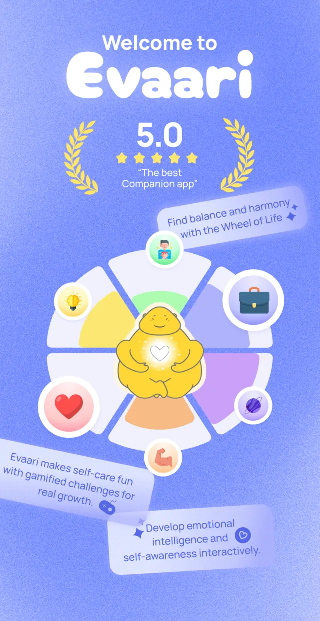 Tap a sector to focus. Evaari suggests a tiny action to gently improve your balance.